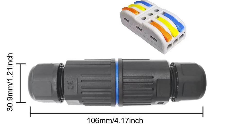 Waterproof mains coupler. Joins 2 cables. Applicable Wires: 0.08 - 4.0 mm2